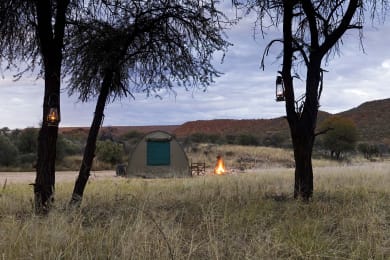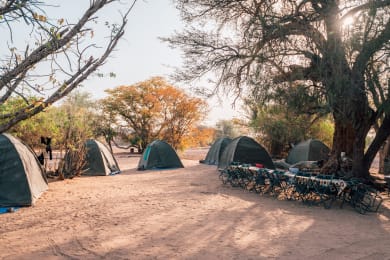 Our tour starts at Chameleon Backpackers where we meet for a pre departure briefing Anyone not staying at Chameleon Backpackers must be prepared for a 7h15 pick up. After the departure from Windhoek, we stop briefly at the Okahandja Wood carving markets. Woodcarvers from all over Namibia come here to sell their hand crafted goods and this is the perfect opportunity to practice our haggling skills all while supporting the local community. Our next stop is our overnight destination, the world renowned Okonjima Nature Reserve. Okonjima, is an impressive 20,000ha nature reserve which is home to an incredible array of wildlife species. It is also home to the AfriCat Foundation, whose long term mission is the conservation of Namibia’s wildlife in their natural habitat, but in a protected conservation area. This includes predators and keystone species and the reserve is w ell known for leopard, cheetah, and hyena sightings. We aim to arrive at camp around midday, giving us ample time to set up camp and enjoy lunch before we join the afternoon activity where we have the chance to see some of the cheetah currently part of t he AfriCat rehabilitation programme. The aim of this programme is to re introduce these animals back into the wild where they can thrive. After our educational tour, we join an afternoon game drive on the reserve before enjoying our first spectacular sunset in the Namibian bush. Dinner tonight is prepared by our guide over an open fire .