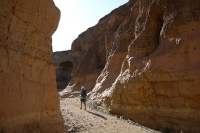 A pre dawn departure from camp this morning means we can enjoy the dunes at first light. We drive down an ancient river bed, surrounded by towering dunes and our first stop is at the famous Dune 45 where we have the chance to climb to the top to enjoy the sunrise. On descent we replenish our energy and enjoy breakfast before continuing on into the Sossusvlei area. We explore this unique are a on foot, heading into Dead Vlei with its large expanse of bleached cracked clay and skeletal camel thorn trees, contrasting with a backdrop of huge dunes with their ever changing colours. We have the opportunity to climb the dune at Sossusvlei before we return to Sesriem for lunch and a swim or siesta during the heat of the day. Mid afternoon we visit the Sesriem Canyon before your guide drops you at Elim’s Dune for a short and educational sunset walk back to camp through the desert.
