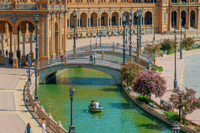 Up you go! You have the whole day to get to know Seville. Today you can visit the Walls and the Barrio de Santa Cruz, the Torre del Oro, the Barrio de Triana, the Barrio Alfalfa, Plaza España and Maria Luisa Park. If you still have energy left, we recommend going on a tapas tour in the evening.