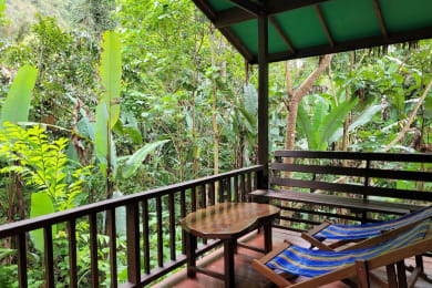 For your evening activity, select either a thrilling night safari to discover the jungle's nightlife or unwind with a soothing traditional Thai Massage. End the day falling asleep to the natural sounds of the rainforest at Our Jungle House.