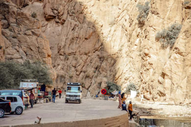 This day begins with exploration of Ouarzazate’s palm groves and desert landscape, then heads into the rugged terrain of the Dades Valley. Nicknamed the “Valley of a Thousand Kasbahs,” this region is filled with crumbling fortresses, lush oases, and dramatic red cliffs. Continue your journey toward the Todra Gorges, where vertical canyon walls rise over 150 meters and form a striking natural corridor. Known for its beauty and popularity with rock climbers, the Todra Gorges are a photographer’s dream. The scenery here is among Morocco’s most dramatic. Spend the night near the gorges, listening to the quiet flow of the river beneath towering limestone walls.