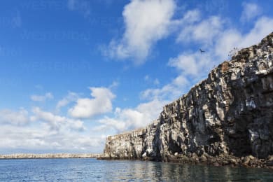 AM - Arrival in Galapagos and boarding the yacht Upon arrival at Galapagos, you will pass through an airport inspection point to ensure that no foreign plants or animals are introduced to the islands, as well as to pay the park entrance fee of $200 (unless it has been prepaid). A guide will meet you, help you collect your luggage, and escort you on a short bus ride to the harbour, where you will board the Tribute cruise. You will be assigned to your cabins, and lunch will be served shortly after. AM: Lobos islet, San Cristobal Lobos Islet harbours a colony of Galapagos sea lions. As in other colonies in the archipelago, you can approach nurturing females within a few metres. During breeding season this colony is also visited by territorial males, defending and mating their harem. There are two other emblematic species breeding here: male blue-footed boobies and great frigate birds who try to impress the females (and tourists) with clumsy dances, heaving their feet or blowing up their balloon-sized scarlet pouches.