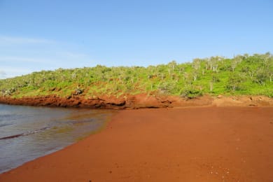 AM - Rabida island This morning you have a ‘wet landing’ on the remarkable red beach of Rabida island. Oxidised iron particles give the rocks and sand an intense rusty colour. The beach wall holds a shallow green-fringed lagoon; this oasis is the most fertile place on the otherwise arid islet, which is overgrown with aromatic palo santo trees. The salty pool attracts all kind of aquatic birds, like pintails and sometimes American flamingos. Between the evergreen foliage of the surrounding mangrove bushes many species of songbirds hide and breed. One of the most outstanding attractions is the major breeding colony of brown pelicans, the only ones in the world that plunge-dive. On return you will be picked up by the inflatable dinghies, to get ready for snorkelling. PM - Chinese Hat Chinese Hat is a 52m/170ft high volcanic cone, forming another islet off the rocky coast of Santiago, where a small colony of Galapagos penguins has settled. Because its primordial fire has been extinguished recently, this is an excellent place to learn more about volcanoes, lava bombs and lava tunnels. Many structures found on this islet have recently emerged from the sea bottom. Galapagos sea lions and countless marine iguanas contribute to fertilizing these new aerial ecosystems.