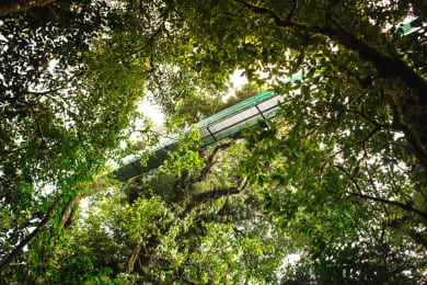 Discover the natural trails and amazing hanging bridges through the dense forests of Monteverde