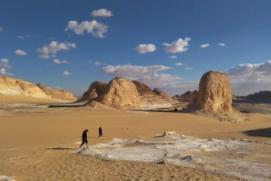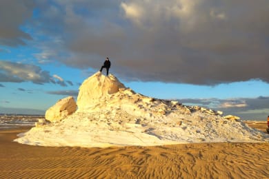 Then we'll go off-road to visit: the Agapat region, the Desert Rose, the Sand Dunes, the Old White Desert, the New White Desert, where we'll watch the sunset.