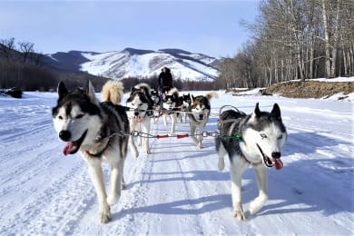 Start out early. Drive to the majestic Turtle Rock and visit the Aryabal Meditation Temple for a peaceful walk up into the mountain. Find your fortune on the buddhist path and marvel at the spectacular view over the National Park. Head deeper into the protected zone, crossing the frozen river, winding your way between the mountains. This landscape is similar to the Northern Mongolian “Taiga” and is rich in flora and fauna. Meet your enthusiastic huskies for your afternoons adventure. Have a short lesson in dog sledding before enjoying a traditional BBQ lunch. Now drive your own team of huskies through the wintery tundra. After 3-4 hours of adrenaline infused fun head to your host family’s ger to have a well earned rest and tasty dinner. Get cosy in your own ger, or spend time with your host family. Perhaps you’d like to learn a traditional game? Perfect for whiling away long winter evenings.