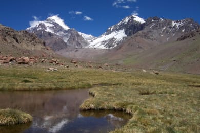 We will leave Mendoza City to head for the most picture-postcard villages and historical places in the mountain along the international route between Mendoza and Chile. In this beautiful tour we will visit: The Potrerillos ́ Dam with its wonderful panoramic points, the Uspallata valley, the historical Picheuta Bridge, and Penitentes ski center. Then, the tour will lead us to the famous Puente de Inca, a natural stone bridge with hot springs. Finally, we will stop in the Aconcagua National Park viewpoint to take stunningly captivating photos.