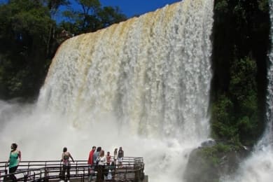 Regular trip to the Argentinian side of the Iguazú Falls. The tour starts at the hotel you are staying in. After picking you up at that location, you will be taken to the entrance to the Iguazú National Park. The train called “Rainforest Train” departs from the Visitor´s Center, an ecological train that goes all along the Misiones rainforest towards the Garganta del Diablo (Devil’s Throat), the starting point of a walkway to one of the most striking landscapes in Argentina, next to the jump after which the Union Jump was named, a place impossible to describe in words for its beauty and energy that makes everyone feel thrilled. A place not to be missed! The trip continues in the next stop: the Iguazu Falls. Here, you have two options: you can either go on the Upper Circuit, which has a 500-meter distance, or the Lower Circuit, a number of walkways that allow appreciating such a natural wonder from another angle. To finish this unforgettable trip, we highly recommend to hire “The Great Advanture: Iguazu Falls Baptism”, which is an optional tour: a combination of a nautical adventure riding on Zodiac boats, in which you will go on a sixkilometers ride down the Lower Iguazú River going through rapids to finish your round in the Devil’s Throat Canyon, and a ride on an uncovered double-traction vehicle through the rainforest, where you will have the chance to fully appreciate the flora and, if you are lucky, the native fauna.