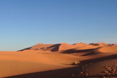 After breakfast, you will leave Fes travelling towards Ifran, a beautiful mountain city, referred to as "the Switzerland of Morocco" and then on to Midelt. During this journey you’ll experience glimpses of the Middle Atlas and Higher Atlas mountains. Stopping at Azrou, a Berber village in the middle of the famous Cedar forest - the largest in Morocco – where you may sight Barbary apes. After some time within the forest, your journey continues to Midelt along the magnificent hills and the Atlas Mountains. Later on we will travel to Merzouga via Errachidia and Erfoud. You will be travelling through the fascinating Tizi Ntalghamt pass and the Ziz Gorge, taking in views of the High Atlas Mountains. You’ll notice how the scenery changes to reveal hints of the desert as you approach the city of Errachidia, where you will have lunch and enjoy the Berber hospitality. Afterwards, you will travel along the Ziz Valley, stopping for panoramic views along the way to Erfoud. You will arrive at Merzouga in the afternoon. You’ll be welcomed with a glass of mint tea before you start your camel ride to spend an overnight at the desert camp with Berber music after dinner.