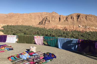 After breakfast in the Dunes we leave the desert and stop along the way to visit ancient irrigation wells. You can see how they were created from an intricate network of underground canals running from the Atlas to the Sahara, more than 300km, and dating back to the 14th Century. We then move on to stunning Todra Gorges and have lunch at our hotel, set amongst the Palmeries and hemmed in by 300M high cliffs. We have time to explore the gorges after lunch or go for some optional rock climbing. We will visit Tizgui, one of the old villages of Todra and stop by a local carpet cooperative where we learn how to make Moroccan tea and Berber rugs.