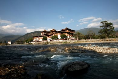 Leaving Thimphu, we start our journey into the countryside towards the Punakha valley, the winter capital of Bhutan. The drive ascends gradually to the Dochula pass over 10300 ft, with magnificent vistas of the Himalayan range. The Dochula Monastery also known as the Druk Wangyal Khangzang Chortens is a tribute to the service and leadership of His Majesty the king. The design inspired by the Queen is a unique cluster of 108 Chortens seen from all directions. The descent to Wangduephodrang is vibrant and colorful, with the fluttering prayer flags adding to a rich topography dotted by terrace farming and rivers flowing through. Option A: Later, we traverse the Punakha countryside walking through paddy fields to the Pana Village to see the `Chimi Lhakhang’ built by the great Lama Drukpa Kinley in 1400 to subdue local demons. The temple is a popular pilgrimage point for all Bhutanese and is specially revered by women for its fertility powers. Option B: After lunch, we see the historic Punakha Dzong sprawled at the confluence of the Phochu (male) and Mochu (female) rivers. It was built by Shabdrung Nawang in 1637 and serves as the winter residence of the head abbot, Je Khenpo and headquarters of the district administration.