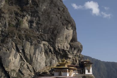 After breakfast, we drive around 25 minutes to Ramthanka base for a hike to view one of Bhutan’s most revered pilgrimage sites in the Buddhist world, the Taktshang Lhakhang, popularly known as the “Tiger’s Nest” Monastery. The trek offers spectacular views of this sacred monastery perched precariously on a sheer rock face 3000 ft above the valley floor. Legend has it that Guru Rimpoche, father of Bhutan’s stream of Mahayana Buddhism arrived in the Paro valley more than a millennium ago on a back of a tigress. He meditated for 3 months in a cave which was converted into this monastery. The only sounds heard here are the murmurs of the wind, water and the chanting of monks. We begin our hike from the base to the cafeteria which will take us at least an hour and a half. From here it’s about an hour’s trek through some stunning landscape to reach the monastery. On our return, we stop by once more at the Cafeteria for lunch. Later, we begin our descent to Ramthanka base. The temple clinging at 3120 meters above the sea level on a vertical rocky cliff, Taktsang Monastery is a wonderful and impressive sight for visitors. Hiking Time: Approximately 2-3 hours walk one way uphill and return 2 hours Route: paths well maintain trails Difficulty: Easy to moderate Recommended: Sport shoes, Sun hat, camera, walking stick, sun glass, Umbrella if rain. Time permitting visit the following monasteries. Later on just try the local costume for photo opportunity. Note: Ponies are available at an additional cost - This facility is for uphill climb/journey only and not for descent.