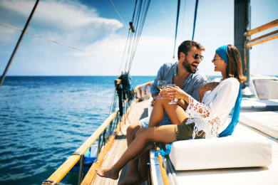 During the entirety of the cruise enjoy an open bar with white local wine, beers and soft beverages. Finish your cruise dining onboard with the magnificent views of the sunset over Caldera.