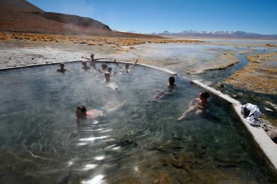 Breakfast at hotel. 9:30 Visit the village of Colchani, where the processing of salt can be observed (drying, grinding and packaging of salt) you will also have the opportunity purchase handicrafts made of salt, San Cristobal Church, Ollague Volcano viewpoint, Cañapa and Hedionda Lagoons. Lunch on route. Arrival to the desert and overnight in a desert hotel. Breakfast & lunch included INCLUDE: Transportation (4x4 truck), Driver-Guide English speaking guide, 1 Bottle of water, entrance´s fee, lunch and first aid kit TIMETABLE: 09:30 am
