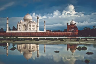 Agra, a city in northern India, is renowned for being home to one of the world's most iconic landmarks, the Taj Mahal. This exquisite white marble mausoleum, built by Emperor Shah Jahan in memory of his wife Mumtaz Mahal, is a UNESCO World Heritage Site and a symbol of eternal love. In addition to the Taj Mahal, Agra boasts other historical gems like the Agra Fort, a UNESCO-listed fortress with a mix of Islamic and Hindu architectural styles. The city also offers a glimpse into the Mughal era through structures like Itimad-ud-Daulah's Tomb and Mehtab Bagh, providing panoramic views of the Taj Mahal across the Yamuna River.