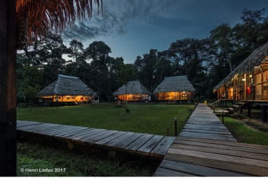 Early in the morning you will explore the area looking out for monkeys and birds in the awakening tropical forest. Breakfast. After time to relax you will hike through the rainforest and your guide will share his knowledge and experience with you. You will learn how the most diverse life forms can coexist in the jungle and survive side by side within a delicate balance. Watch out for colorful butterflies, frogs and birds as you learn more about the great variety of flora. Later you will return to the lodge for lunch. In the afternoon you will take a trip on the Cuyabeno River, which will lead you through the dense forest landscape. You will be able to observe the wildlife found on the riverbanks, especially monkeys, macaws, toucans and sloths. Here you also have good chances to see pink river dolphins (Iniageoffrensis and Sotaliafluviatilis) in the impressive river landscape. Before dinner, after dusk, you will explore the lodge’s surroundings to look for nocturnal animals such as insects, spiders, snakes and frogs becoming active when the sunsets