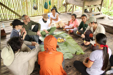 During an excursion early in the morning, you will take a canoe ride to enjoy the awakening nature. After breakfast, you will take a motorized canoe to visit the Seoqueya community, home to some Siona indigenous families. The family members will show you how to make ‘Cassave’ (typical manioc bread of the region). Your guide will explain the local customs and traditions of their past and present culture while you have lunch. Later you return to the lodge. In the afternoon you will travel by motorized canoe along the Cuyabeno River to the Laguna Grande. As you explore the lagoon, you will get to know ‘Igapó’, the flooded rainforest. This is a very special rainforest ecosystem dominated by giant macrolobium trees which, provide habitat for epiphytes and specialized bird species. After exploring the lag oon, you can refresh yourself with a swim in the calm waters while watching the spectacular sunset of the Amazon. Later you will continue your adventure and observe the nocturnal fauna of the river landscape, watching out for caimans before returning to the lodge. Dinner