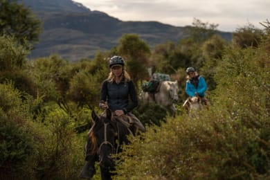 After breakfast at our hotel, our day begins with a short transfer to Puerto Bories where we will embark on the 21 de Mayo navigation taking us along the Last Hope Sound and face-to-face with the steeply-descending Serrano Glacier at the foot of Mount Balmaceda (2148 m). We’ll take a short walk up to the glacier viewpoint before boarding a boat which will take us across the Last Hope Sound to the Serrano River where we will meet our horses and the local gauchos who will accompanying us along our first ride to Lake Brush, and our backcountry campsite for the evening. Once we’ve prepared ourselves and the horses, we set off along a peaceful 4 hour ride, walking and trotting as we follow the Serrano River into the beautiful humid forests and views of the river and valley that stretches out around us.