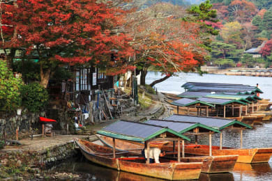 The Itsukushima Shrine, a highlight of Japan, will come into view. Known as "the island of gods," Miyajima is celebrated on the UNESCO World Heritage list. A sea kayaking tour provides a close-up look at the island's splendor. With a guide, you'll paddle through the story-rich waters, learning about the island's lore and landmarks. Some Shinto shrines are on the itinerary, with a few only accessible by boat.
