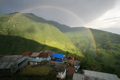 Start off with an early morning wake-up call and begin your pre-dawn climb to Poon Hill (10,500 ft) in just about an hour. This is a spiritual place that provides majestic scenery, especially when the rising sun casts a golden light on the nearby snow-covered peaks like Dhaulagiri, Annapurna South, Fishtail, and Singa Chuli, to name a few. Grab a masala tea from the coffee shack and enjoy the sublime views with your fellow trekkers. You'll then return downhill to Ghorepani for a hearty breakfast before continuing a full day of trekking towards the small village of Tadapani. This trail works itself uphill and downhill through a range of landscapes and microclimates, so keep your camera (and warm layers) close.