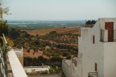 Leaving the masseria, you slowly begin to climb catching sight of pedal after pedal of the outline of Ostuni, known as the “white city” for its lime-plastered houses and walls. A steep but short climb leads you there. You thus feel like you are in a sort of small Mediterranean Kasbah, made up of narrow alleys and white stairs, where it is pleasant to get lost while enjoying a drink or a glass of wine in the warm light of the sunset.