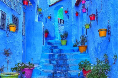 After breakfast, drive three and a half hours to Chefchaouen. Have lunch (not included) before taking a tour of the mystical village. Known for its signature powder-blue walls and its calming charms, the village was founded in 1471 AD. Your guide will lead you to his favorite haunts as well as the signature locations of Chefchaouen, starting with the Kasbah in the center of town offering breathtaking panoramic views from the top of the tower. You can also meander up the town’s waterfall, where locals meet to chat and do laundry, where you can relax with your toes in the water at one of the river bank’s small coffee shops! You have the option to also partake in a professional photography shoot as you tour the blue city to preserve the memory of your visit to the Blue Pearl! You’ll enjoy sunset at the Spanish Mosque and enjoy dinner at your convenience (not included). You’ll spend the rest of your evening at your leisure either relaxing in your riad or taking one last peek at the lovely blue streets