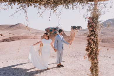 After you start your day with breakfast, you will head to the stunning Majorelle Gardens. Global fashion icon Yves Saint Laurent made his second home in Marrakech for many decades, and his vision drove every detail behind the lush Gardens, accompanied by a small but must-see Berber Museum! After your visit to the Majorelle Gardens, you can head next door to the Yves Saint- Laurent Museum, which honors the fashion icon’s love of Marrakech and builds upon the collections housed at the Majorelle gardens. The building itself is a work of art and houses a permanent collection of some of YSL’s best known designs along with rotating installations dedicated to themes about which he cared. You’ll take in the beauty of the gardens and museums before enjoying your lunch (not included). You’ll then enjoy some free time before driving less than an hour to the Rocky Agafay Desert. Once you arrive, enjoy the views before you’ll meet your furry friend for a camel ride around the luxury camp. You’ll have tented dinner, and then you can enjoy some stargazing before making your way back to Marrakech.
