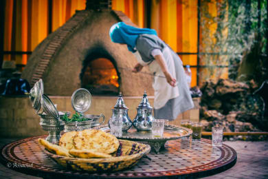 After breakfast, you will take part in a traditional Moroccan tagine cooking class and enjoy an immersive and fun cooking experience! Accompanied by a local “dada”, or expert cook, you will dig into all of the key components of a Moroccan meal, starting with how to prepare the famous Moroccan mint tea. Next, you’ll sample some tasty local bread and here all about how we cook traditional Moroccan bread. From there, the hands-on portion of the course begins as you will prepare two different staples of Moroccan starters, a tomato and cucumber salad and a second salad using eggplant (please note: the exact salads may change depending on the day’s ingredients). After that, you’ll finally learn to prepare your main course, the famous Moroccan Tagine of chicken with preserved lemons. While your tagine is cooking over the fire, you’ll also prepare Moroccan cookies with almond paste. The class ends with a lunch where you eat your very own masterpiece! You’ll then enjoy your afternoon and evening at leisure and have dinner (not included) as you savor your last night in Morocco.