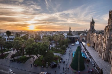 A short morning flight takes you to Arequipa, one of the most beautiful colonial cities in Peru, also known as “The White City” because of the many buildings that are made of volcanic clay. Our local contact person is waiting for you at the airport to take you to your hotel in the historical center. Arequipa is surrounded by three beautiful volcanoes: Picchu Picchu, Chachani and El Misti. In the afternoon, your guide takes you on a walking tour in the city which includes a visit to the colorful Santa Catalina Convent. Arequipa city is also known for its mild climate and its great regional gastronomy, so make sure to try some local dishes in one of the many restaurants of the city.