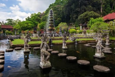 Tirta Gangga Water Palace is a stunning water garden in the Abang, Karangasem Regency village in East Bali, Indonesia. Built-in the early 20th century by the King of Karangasem, it was a royal palace and a place for relaxation and entertainment. The castle features a collection of pools, fountains, and statues surrounded by lush greenery and breathtaking views of the rice terraces and mountains. The water garden is renowned for its intricate architecture and serene atmosphere, making it a popular destination for tourists seeking a peaceful retreat.