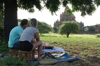 Breakfast at the hotel. A picnic in Minnanthu – half day Minnanthu is probably the favourite temple area amongst frequent Bagan visitors and you know why? It’s quiet, it’s a beautiful area and the temples here are often completely deserted. The guide brings you by car to this forgotten part of Bagan and will spread out a blanket and serve you a great picnic lunch in this historical setting before or after visiting 2 or 3 ancient temples ruins in this area. E-Bike & Temple view swing – half day Bagan is an ancient city of Myanmar - the stunning landscape of ancient temple ruins that seem to be spread around randomly in between toddy palms and bamboo huts. During this half day electric biking tour, the guide will show you some of the most spectacular sceneries of ancient lesser-known temples and the best of all is that you can stop any time, any minute to make some beautiful pictures. At the end of the trip, enjoy a fun swing between palms tree while some healthy juices and traditional snacks are served.