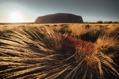 Shuttle transfer from your accommodation to Sydney Airport. Domestic flight Sydney - Ayers Rock (not included) and transfer to your accommodation. GUIDED TOUR AND SUNSET ON ULURU IN SMALL GROUP Heading off to one of the most famous monolithic on the planet: Uluru (Ayers Rock)! You will visit caves located at the base of Uluru with rock paintings left by Aboriginal ancestors. You will be able to grasp all the resonance and impact of this sacred place for the Aboriginals. At dusk, you will stop at Talinguru Nyakunytjaku, the sand dune where you can admire the sun setting behind Uluru and Kata Tjuta. Enjoy this special moment, together with a glass of sparkling wine and appetizers. The magic will have already worked... and the night will come to invade the place.