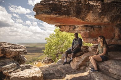 DAY TRIP TO ARNHEM LANDS WITH AN ABORIGINAL GUIDE You will travel beyond the East Alligator River in Arnhem Land, one of Australia's most remote and least visited areas. You will discover inaccessible places, including ancient rock art sites in their natural state. Your Aboriginal guide will explain to you the skills that his ancestors used to go hunting, harvesting, and more generally to live in the bush. You will meet Aboriginal artists at the Injalak Arts and Crafts Centre in Oenpelli. After lunch, you will travel to the Mikinj Valley, where you will enjoy the scenery of billabongs. The fauna is rich and the ochre sandstone escarpments emerge.... You will feel the full power of Arnhem's Secret Land.