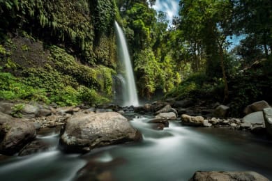 A visit to Sendang Gile Waterfall is a mesmerizing adventure into the lush rainforests of Lombok, Indonesia. Located in the village of Senaru, this majestic waterfall is one of the island's most iconic natural wonders. The journey to Sendang Gile begins with a scenic trek through verdant jungles, passing enchanting streams and cascading waterfalls. As visitors approach the main waterfall, they are captivated by the sight of water rushing down from the heights, creating a spectacular display of nature's power and beauty.