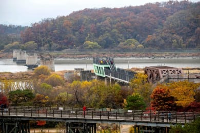 Cross the historic Unification Bridge, noting its significance as you prepare for your entry into the heavily fortified Demilitarized Zone (DMZ). Proceed smoothly through mandatory security and identification checks by military personnel.