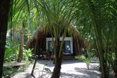 Night at Isla Palenque in Beachfront casitas. Beachfront Casitas are located on the West side of the island, along the sprawling Playa Palenque beach. In-Room ammenities: Air Conditioning & Ceiling Fans King-Sized Beds, Double Armoires & Dressing Area Spacious Private Gardens, Beach Hammocks Indoor & Outdoor Bathing Experiences, Organic Toiletries Wi-Fi & Laptop-Sized Safe Minibar with Local Snacks & Drinks Daily Housekeeping & Evening Turndown Service