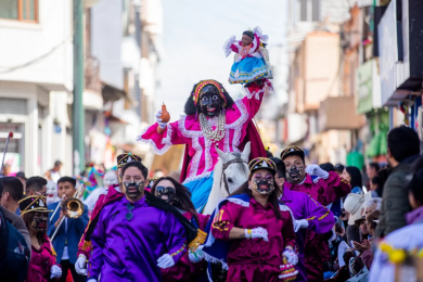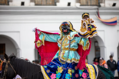 Experience the authentic Mama Negra, blending indigenous, African, and Spaninsh tradditions.