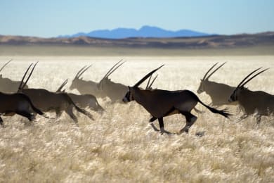 Today you leave the Atlantic waters behind and travel deep into the ancient Namib Desert. You'll drive along gravel roads with dramatic landscapes unfolding around every corner. The rock formations around the Gaub and Kuiseb Canyons are genuinely marvelous. These ephemeral riverbeds were once home to elephants, rhinos and lions. Their petrified footprints are still visible in the clay today - preserved by the shifting sands covering them. The Kuiseb River Valley marks the dividing line between the sandy southern dune area and the vast northern gravel plains. Stop at Solitaire for their famous Apple Pie and to refuel. Arrive at your destination in the late afternoon. Your lodge enjoys stunning views over gravel plains, and the sunsets are spectacular. Relax and enjoy the facilities.