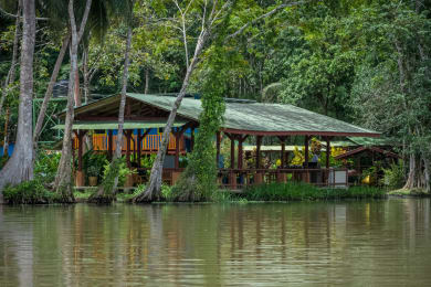 Today in the morning the journey continues a little further north, but always on the Caribbean coast, where coastal ecosystems are mixed with wetlands and mangroves. After breakfast, drive to the Goshen Pier in Batán, where you can park your car and wait for the boat that will take you to Lirio Lodge on the Pacuare River. Once at the Lodge, you will check-in and rest before lunch. In the afternoon you will visit the village of Barra de Pacuare, located on the land bank between the lagoon and the Caribbean Sea. On this visit, you will discover the charm of life in a typical Caribbean coastal village, visit the school and the village, as well as the sea turtle project, located on the beach. Your next tour will take you to the mouth of the Pacuare River and its wetland by boat, an ecosystem of high importance for endangered species, home to numerous birds, amphibians, otters, and reptiles such as the caiman, river turtles, and many more species. In the evening, you will enjoy dinner at the lodge's restaurant/bar, next to the Madre de Dios Lagoon.