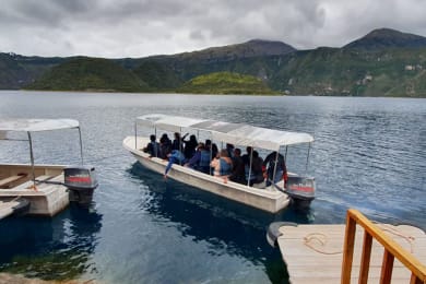 You will start visiting the famous handicraft market of Otavalo is one of the biggest handicraft markets in South America, and market stalls are scattered in all the main streets of the city center. It is the place to find some nice souvenirs for friends, family and yourself. Make sure to bargain at least 20%-30%. You will have free time to explore the market. Then you will visit the Peguche waterfall, it is located in Peguche community, just 10 minutes northwest of the town of Otavalo. Peguche Waterfall is a beautiful waterfall of 18 metres high, formed by the river of the same name, which starts at Lake San Pablo. The waterfall is one of the most important tourist attractions nearby Otavalo. Afterwards, you will visit the nearby village of Cotacachi. This quiet town is very famous all over Ecuador for its good quality leather. You will find many shops selling different items like belts, jackets, bags, etc. Do not hesitate to shop while you are there as the prices of the leather are lower than back home. You will head to the Cuicocha Lake, located twelve km from Cotacachi. Cuicocha is a young volcano that erupted 4,500 years ago which covered a large area of north-western South America with ashes. This intense activity continued until about 1,300 years ago. The lake is formed in a former crater of the Cotacachi volcano and has two islands inside of it called Teodoro Wolf and José María Yerovi. From there, you can walk up to the viewpoint for some nice pictures, hike near the lake or jump on one of the small boats for a tour around the lake. Included:Private trasnportation with English speaking driver-guide, entrance fee to Peguche waterfall, Casa de la Musica, obligatory permission to Cuicocha reserve, boat ride, accommodation in Otavalo. (Meals: Breakfast and Dinner)