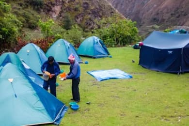 Re-energized, set out for the final three-hour trek of the day, gradually descending into the lush beginnings of the high jungle, where the scenery grows greener and the air warmer. Reach your campsite at Challhuay or Colcapampa (2,900m), ready to unwind, dine, and sleep beneath a canopy of stars.