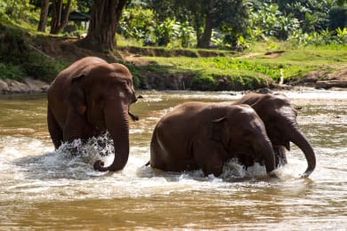 The Elephant has been Thailand's national animal for a very long time. Today, drive out of the city into the lush countryside to Elephant Nature Park for a join-in group tour. First, get to know the sanctuary's rescue efforts for elephants, buffaloes, dogs, cats and other animals. You will then walk on an elevated boardwalk and around the park, observing how elephants socialize in their herbs, eat with their long trunks, play in the mud pit, and bathe themselves in the river. This will be an unforgettable day in the company of these gentle giants.
