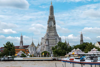 Your guide will be waiting in the lobby to lead you on a full-day discovery of the city's essential sights. Start by visiting a colorful flower and vegetable market to experience authentic local life. Carry on to the renowned Grand Palace, Thailand's most important landmark. This former royal residence houses glittering halls, pavilions and temples, including the sacred Wat Phra Kaew. The afternoon continues with a long-tail boat ride through the canals, known locally as Khlongs, to see Thai houses on stilts and the typical rural life of the local people. At the end of the cruise, admire the truly spellbinding Wat Arun from the boat on the river. Disembark and walk into the nearby Wat Pho to witness the 45-metre gilded reclining Buddha. Finally, return to your hotel, with the rest of the day to relax.