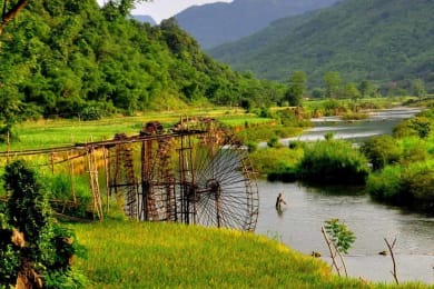 PM: A whole afternoon to explore village life at Pu Luong and seek for giant water wheels - the greatest creation of mountainous ethnic minorities in Vietnam. Transfer to Ban Cong and start an easy walk. Go across a wooden bridge to one of the most scenic villages at Pu Luong where the largest stream flows through. Keep walking alongside the river, you will have opportunities to see stuning landscape and rice fields. Together admire giant water wheels and tour guide will show you more about village life.