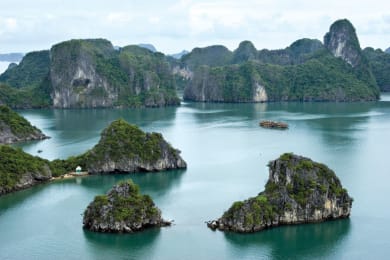 If you wish to see how the Hanoi people rise and shine in the morning, wake up early and run to a lake close by your hotel, you can join an exciting scene of hundreds of locals, passionately attentive in their morning exercises of Tai Chi quan, jogging, martial arts, classical dance and so on. After breakfast at the hotel, we will head to Halong Bay, a Natural World Heritage as designated by UNESCO since 1994 and 2006, and check-in our overnight boat. Enjoy a trip on Halong with stops to visit caves or to swim and enjoy the sunset on the sea. Dinner with fresh seafood. Overnight onboard.