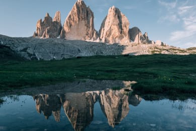 A top day to end our stay. From Auronzo, we discover the three most mythical mountains of the Dolomites, Tre Cime di Lavaredo. From the foot of these stone giants, we see more closely the Cima Grande, the highest summit of the three at 2999m. Surrounded by Cima Ovest and Cima Piccola, we hike up to Locatelli refuge and to incredible views of the north face of these 3 emblematic peaks. Return to Cortina in the middle of the afternoon. End of this trip. Private transfer to Auronzo refuge: Around 45 minutes 4 hours of hiking Elevation: +500 / - 500
