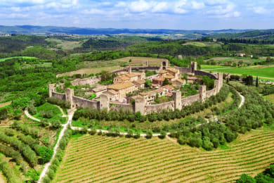 This morning you will enjoy a hot air balloon ride ( Grouped or Private ). You will fly above the beautiful hills of Chianti at the early hours of the morning. Discover the rolling fields of Tuscany from a unique aerial perspective with a luxury hot air balloon ride. After getting picked up from your hotel, head to the starting point where you will receive a quick safety briefing before take-off. If you wish, you can help with the aeration of the balloon before entering the cart for your flight. During your 1-hr flight, you will sail at heights varying from 500 feet to 3000 feet, depending on the wind of that day. Admire the breathtaking landscape of Tuscany and see gentle hills dotted with pretty Italian villages, cypress trees, dominant castles, and abundant vineyards, olive groves and orchards. Upon landing, toast your experience with a glass of sparkling wine and light breakfast. *Flight routes and taking off locations are subject to flying conditions. After the hot air balloon ride, you will reach Monteriggioni, another charming little town located in Tuscany countryside, where you will meet your personal guide. Monteriggioni represents one of the most important walled castles in the territory. It has incredibly preserved an intact structure as if time had never passed on the hill from which it elegantly dominates the surrounding landscape. Its perfect circular perimeter makes one suppose it to be an artificial construction while in actuality it was created by just following the curves in the natural ground. The castle was built by the Sienese between 1213 and 1219 for defensive purposes: its strategic location atop a hill overlooking the Cassia Road allowed the castle to control the cities of the Val d’Elsa and Staggia and be on the lookout for any armies approaching Siena. Overnight at your accommodation
