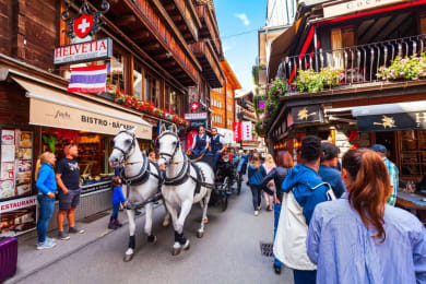 Zermatt is a charming and world-famous resort town in the Swiss Alps. Nestled at the base of the iconic Matterhorn mountain, it is renowned for its breathtaking natural beauty and outdoor recreational opportunities. Zermatt is a car-free destination, with horse-drawn carriages and electric taxis as the primary modes of transportation. Visitors come to Zermatt to enjoy skiing and snowboarding in the winter, as well as hiking and mountain biking in the summer. The town offers a wide range of high-end hotels, restaurants, and shops, making it a hub for luxury tourism. Zermatt's stunning alpine vistas, outdoor adventures, and the Matterhorn's iconic presence make it a beloved destination for nature enthusiasts and thrill-seekers alike.