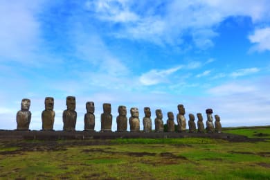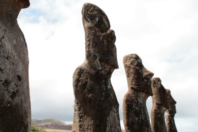 Uncover the secrets of Easter Island by piecing together the many clues given to us by the gigantic sculpted megaliths that cover this mysterious land. Start the journey by visiting the ahu platforms at Tahai, where the clear morning light brings alive the moai that look over this restored ancestral village of the Rapanui people. Visit the ruins of the fallen moai at Ahu Akahanga, where three platforms sit untouched since the Rapanui turned on the traditions of their ancestors and began toppling the moai. Stand in awe at the restored site of Ahu Tongariki, where fifteen stone giants stand watch over the land as silent sentinels, dwarfing all who come into their presence. Spend a bulk of the afternoon absorbing the grandeur of the moai that sit half emerged from the soil Rano Raraku, the volcano crater that acted as a stone quarry and birthplace for these immense figures. Visit Ahu Te Pito Kura, the site of the largest moai to ever stand on an ahu, and see the legendary magnetic stone that according to island history, was brought to Easter Island from the original Polynesian homeland of Hiva by the first king, Hotu Matuʻa. Finish the day taking in the coconut palms, turquoise water and white sand at Anakena Beach, and gazing upon the post-modernist style moai of Ahu Nau Nau.