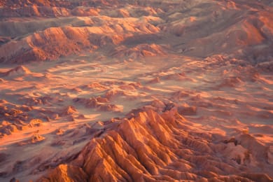 Today we leave Santiago to Calama, in the desert of Atacama. On arrival we will get transfer by bus to San Pedro de Atacama where we will arrive to the hotel. In the afternoon our local guide will pick you up to go to Moon Valley Tour (with sandboard option). This is an essential tour in your visit to San Pedro that invites you to take a tour along the Salt Range, enjoying direct contact with the dunes and salt and calcium sculptures of the Death Valley, contemplating the overwhelming view of the Kari gorge, and finishing the day in the formidable Moon Valley.